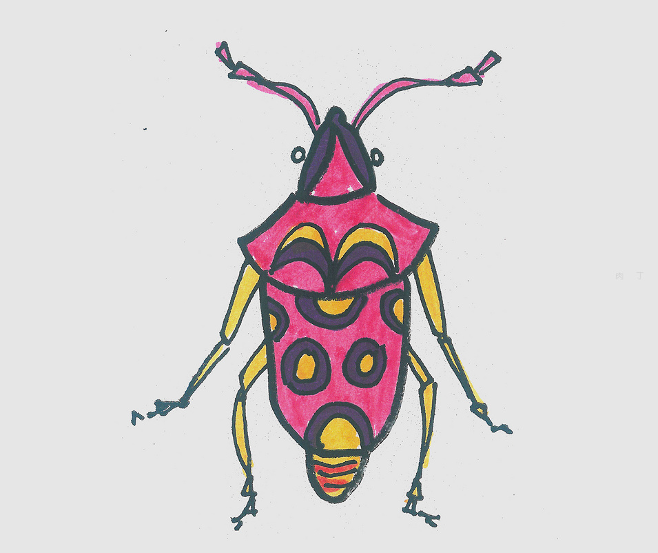 第5步、好看的甲蟲手繪畫好了,甲蟲你學會了么?一起欣賞甲蟲作品。