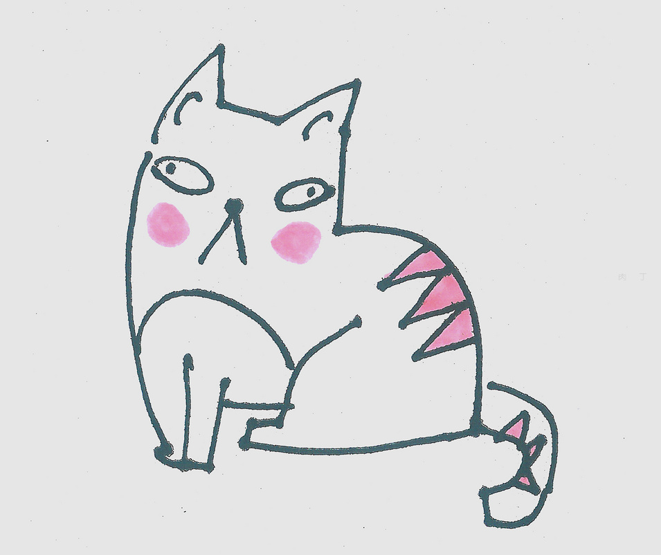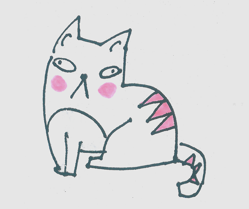 第5步、美美的小貓咪簡筆畫就畫好了,快來看下貓咪作品效果。