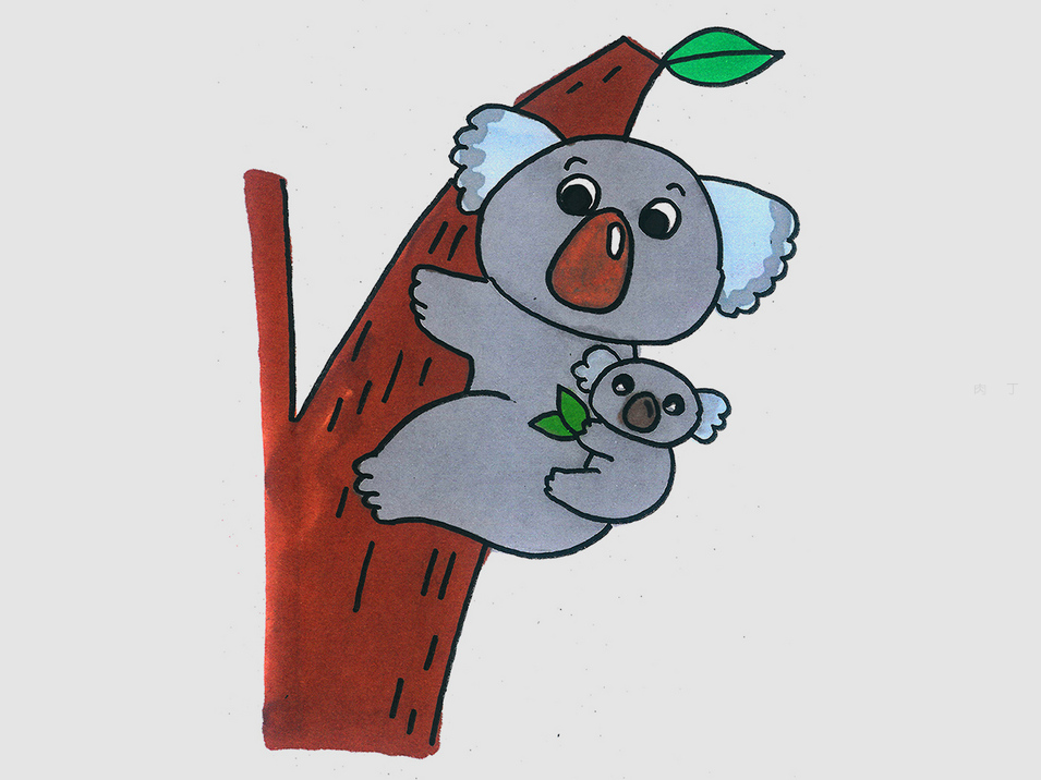 簡筆畫樹袋熊的畫法第3步:接下來我們為樹袋熊填上顏色。兒童畫色彩小樹袋熊的畫法步驟教程全部過程,拿去不謝!