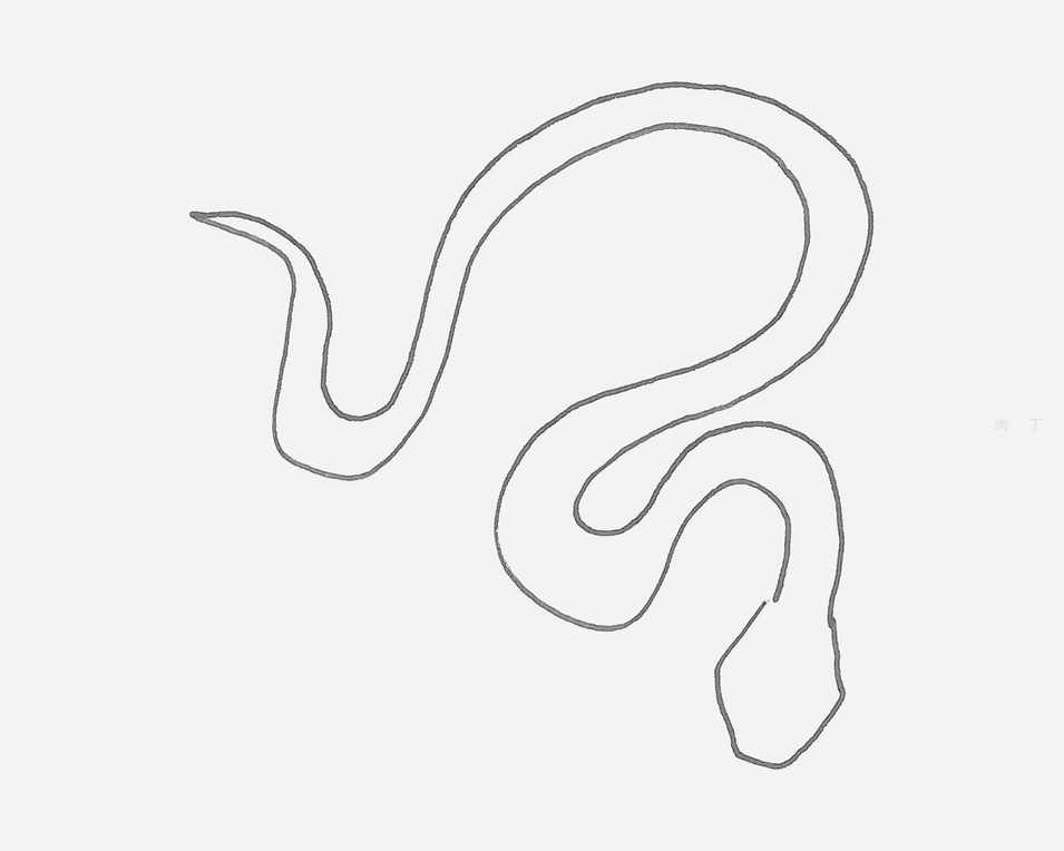 第1步、從畫出蛇的線稿開始,然後是腦瓜、舌頭、身體和花斑。