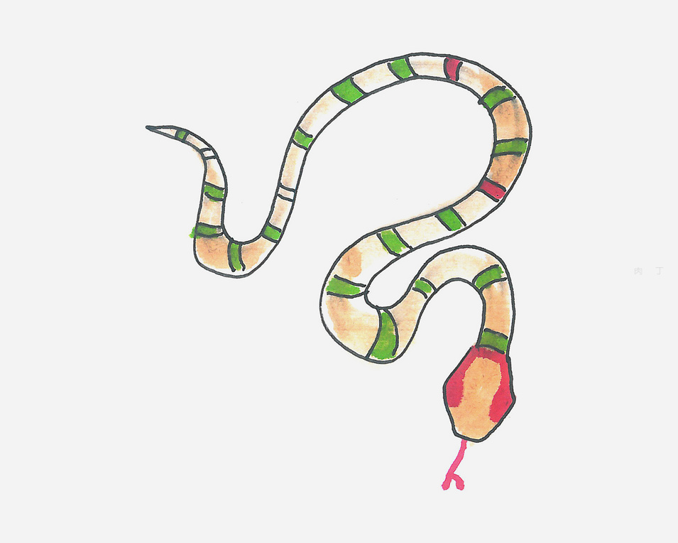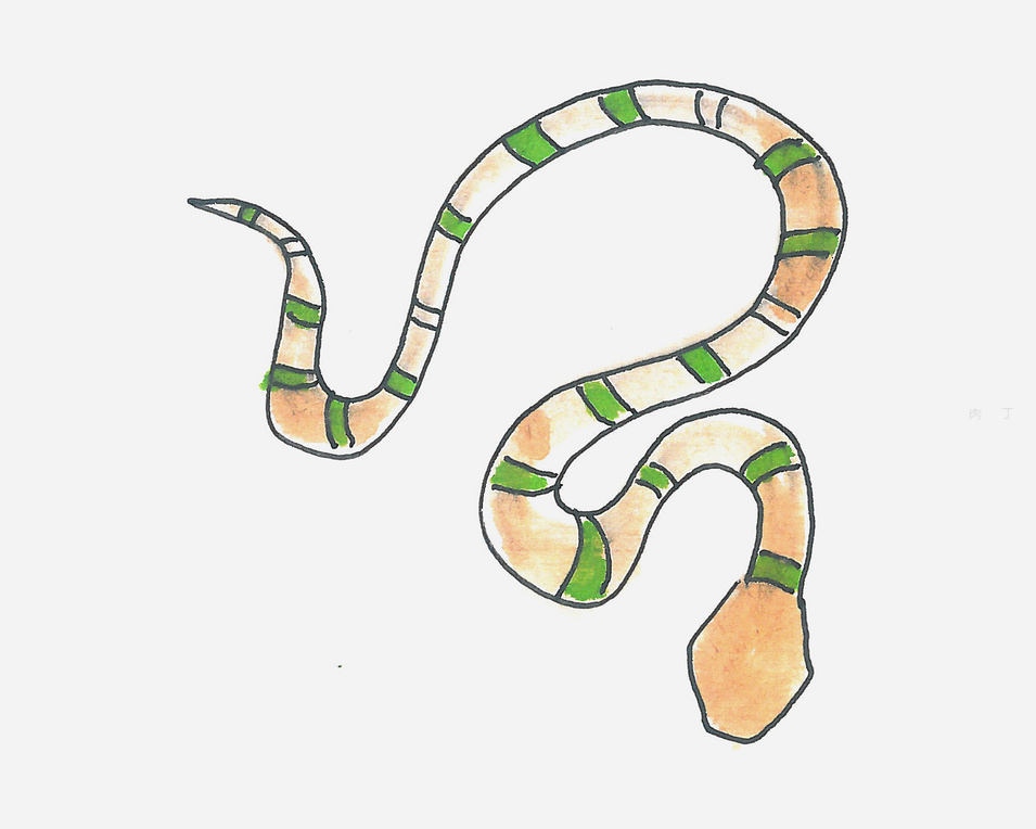 第5步、有顏色的蛇畫好了,你會了么?快來欣賞蛇的兒童畫作品的效果。