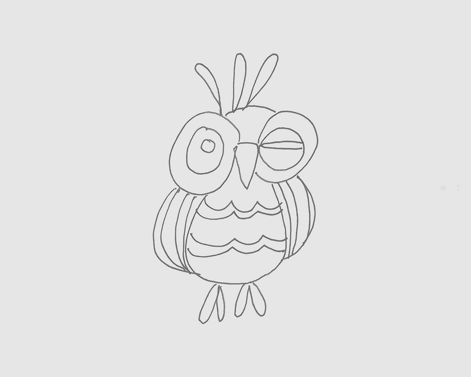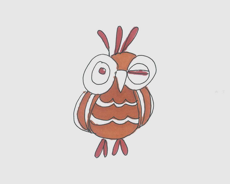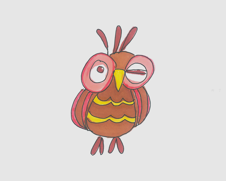 第6步、有顏色的貓頭鷹簡筆畫就畫好了,你學會了么?感受貓頭鷹的兒童畫完成作品的效果。