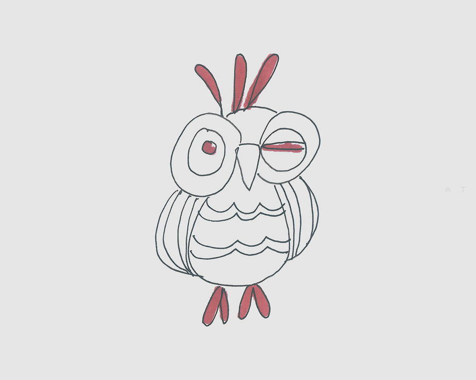 天冷了,貓頭鷹也圍上圍巾保暖,看著真是有趣。喜歡它的同學,只要跟著下面的步驟圖一步步學,那就肯定可以畫出來哦!先把頭兒畫。然後是圍巾。再把身體畫。腳丫和翅膀。