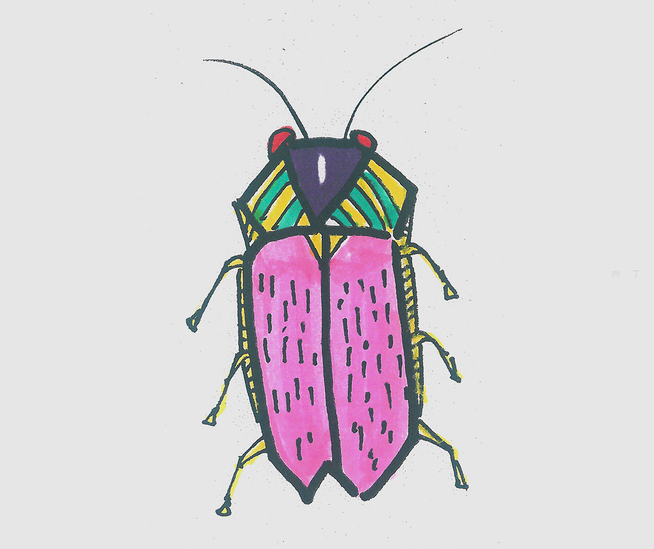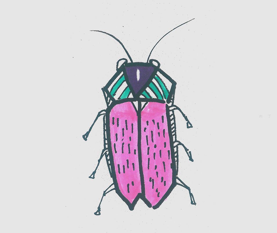 第6步、漂亮的甲蟲繪畫畫完了,你會了么?看看甲蟲的畫法作品的效果。