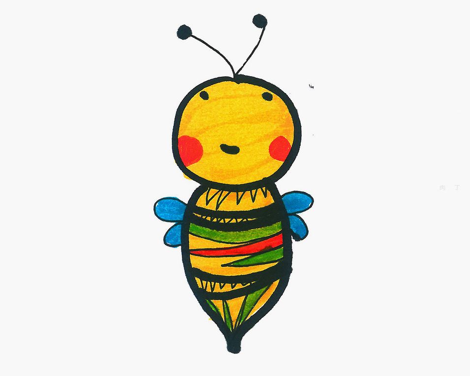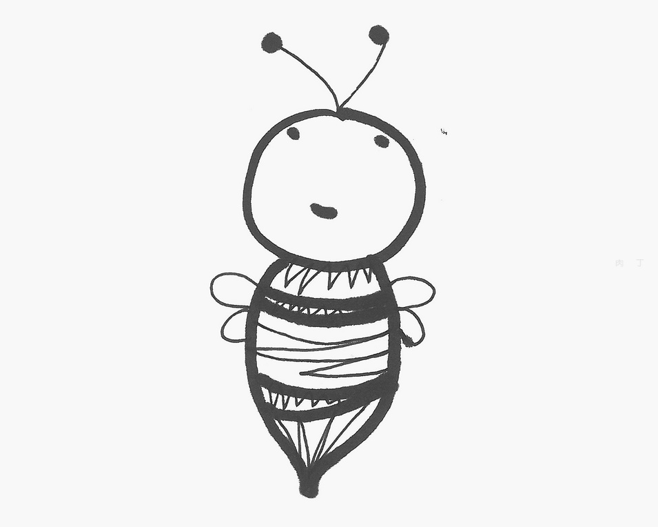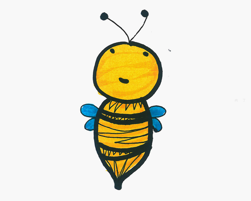 第5步、蜜蜂教程就畫完了,一起欣賞蜜蜂的作品完成效果吧,不妨動手做一副獨一無二的簡筆畫吧!你可以去列印上面的線稿,來畫出更多效果的填圖哦。