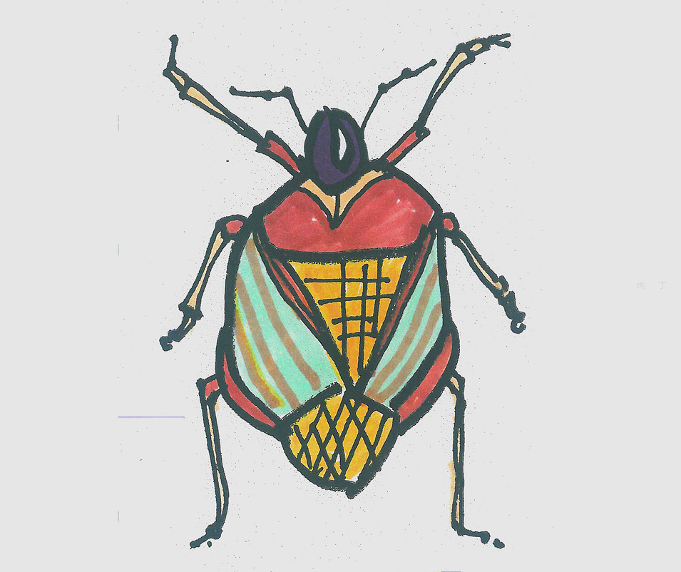 第2步、給小甲蟲輪廓線填畫更多畫面。