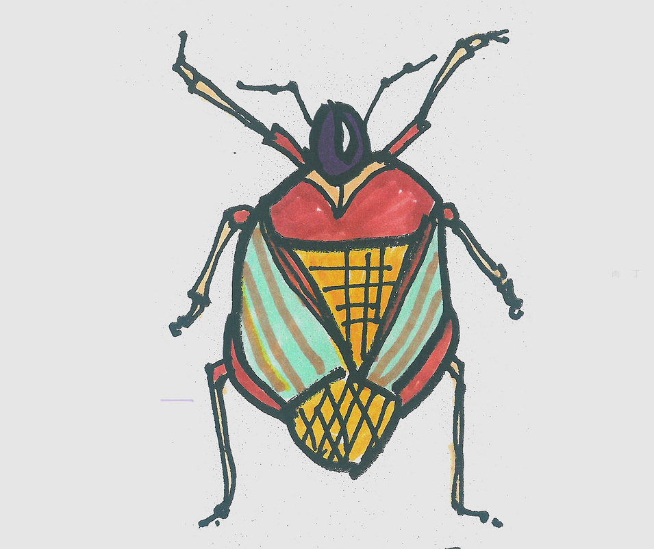 第6步、美美的甲蟲簡筆畫畫好了,你學會了么?一起欣賞甲蟲的畫法最終作品的效果吧。