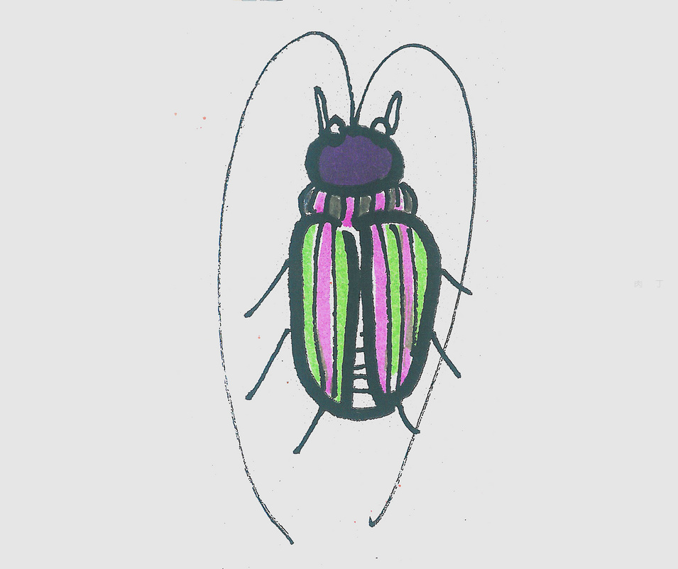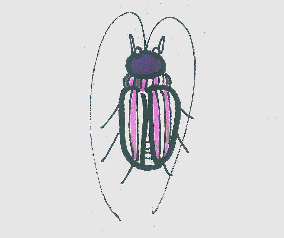第6步、美美的天牛畫法就畫完了,你學會了么?一起感受天牛的簡筆畫最後完成作品。